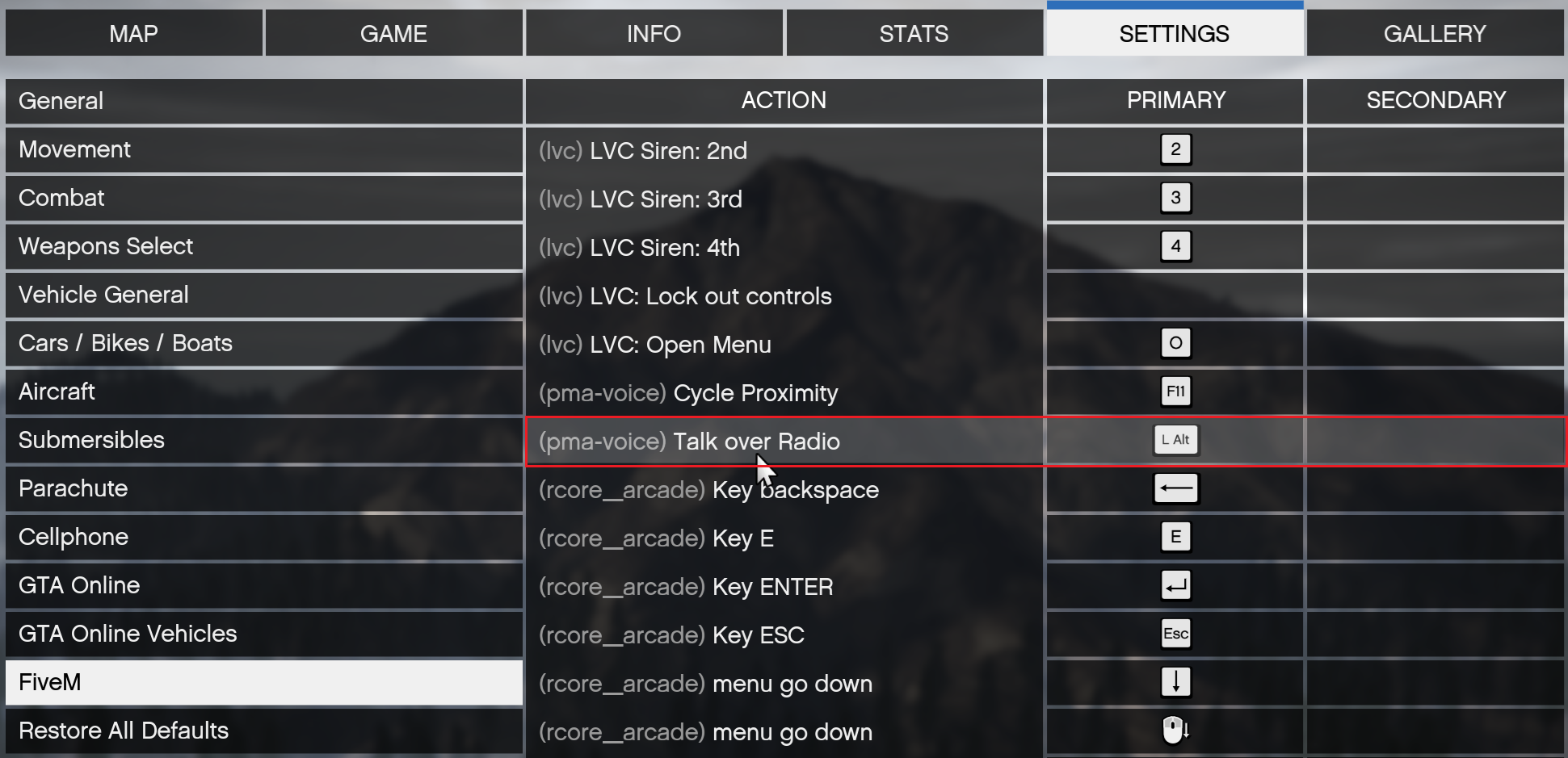 This image shows you where exactly in the FiveM settings you can find the Push To Talk keybind for the radio.